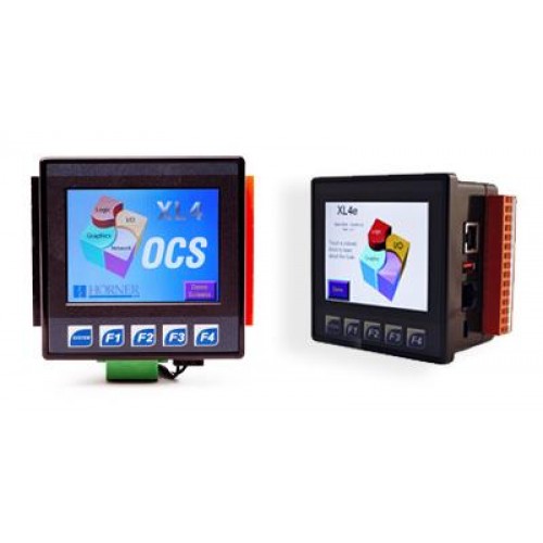 The XL4 All-in-One controller with a built-in 32,000 colour TFT touch screen, I/O-Modules, networking options, removable MicroSDCard and USB ports. Programmable by Horner APG's industry recognised Cscape software, XL4 can control a wide range of different processes and machines from small to medium applications.