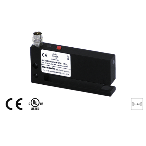 are featured by a very high switching frequency, a short response time and a high resolution. Large fork openings offer enough room for thicker label material. Versions with a very flat lower branch enable the detection of labels directly on the dispenser edge, guaranteeing a considerably increased precision of dispensing.